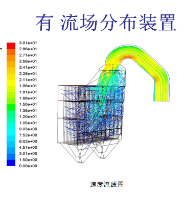 進氣口氣流能否均勻的進入電場,對電除塵器的收塵效果影響很大,針對這種情況,我公司和西安建筑科技大學(xué)環(huán)保所進行合作,采用最先進的集成軟件系統(tǒng),根據(jù)電除塵器的進氣口和進風(fēng)管道的布置方式及尺寸、工藝布置圖等,針對電除塵器的進氣流場分布進行模擬試驗,設(shè)計一套最佳的流場分布裝置,在工藝正常的情況下,使煙氣均勻通過電場,保證氣流斷面流速差小于5%。