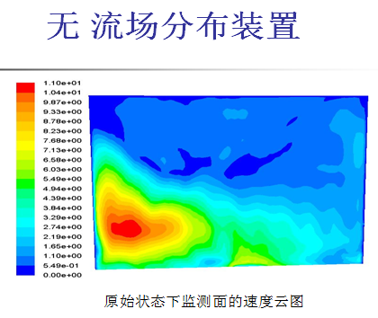 從以上氣流流場分布模擬試驗中,增加了流場分布裝置以后,進入電除塵器整個斷面的流速非常均勻,煙氣均勻進入電場后除塵效率明顯提高。