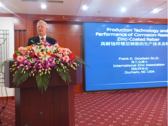 國(guó)際鋅協(xié)會(huì)弗蘭克-顧德威博士做《高耐蝕鋅鍍層鋼筋的生產(chǎn)技術(shù)及特點(diǎn)》專題報(bào)告