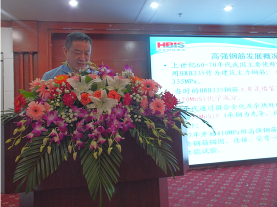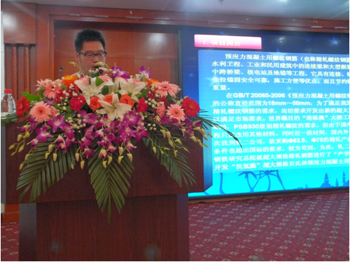 河北鋼鐵集團(tuán)承鋼公司副總工程師宮彥嶺做《高強(qiáng)度精軋螺紋鋼筋的生產(chǎn)與深加工》專題報(bào)告