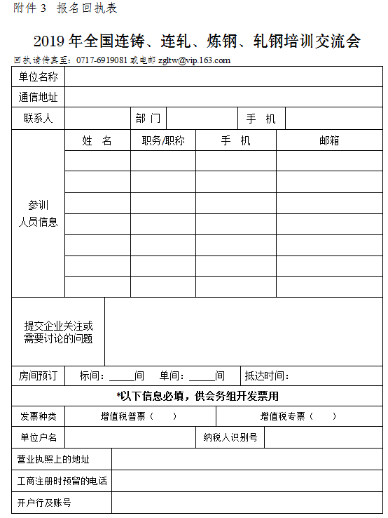 2019年全國連鑄、連軋、煉鋼、軋鋼培訓交流會通知