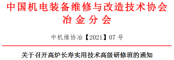 關(guān)于召開高爐長壽實用技術(shù)高級研修班的通知