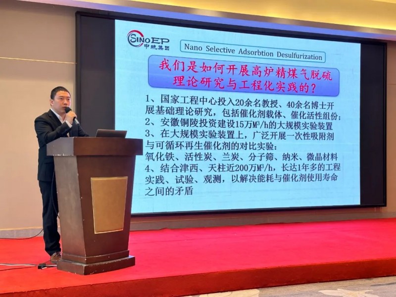 中琉環(huán)??萍加邢薰炯夹g(shù)經(jīng)理黃楊超作《NSAD高爐煤氣精脫硫技術(shù)助力軋鋼產(chǎn)線管理》主題報(bào)告。