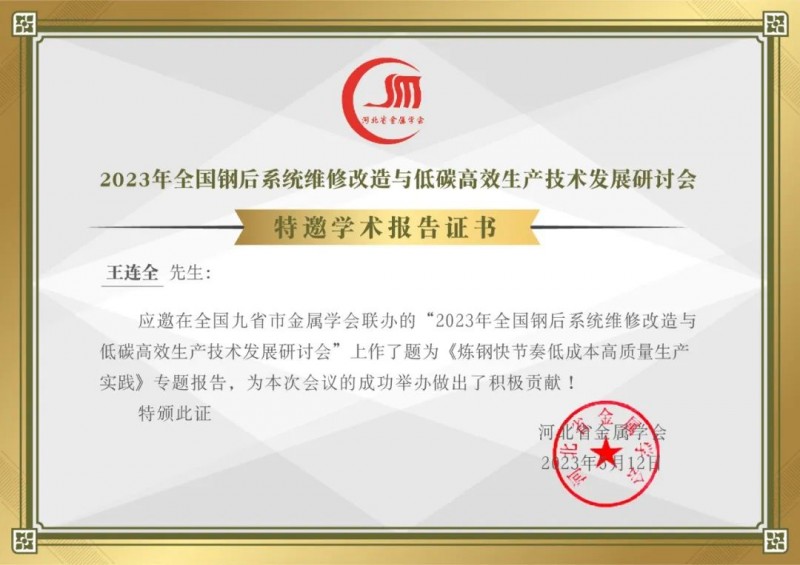 天津市新天鋼聯(lián)合特鋼有限公司煉鋼廠煉鋼廠長(zhǎng)王連全作《煉鋼快節(jié)奏低成本高質(zhì)量生產(chǎn)實(shí)踐》主題報(bào)告