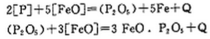 在氧氣頂吹轉(zhuǎn)爐中,磷的氧化是在爐渣-金屬界面中進(jìn)行的,其反應(yīng)式為:
