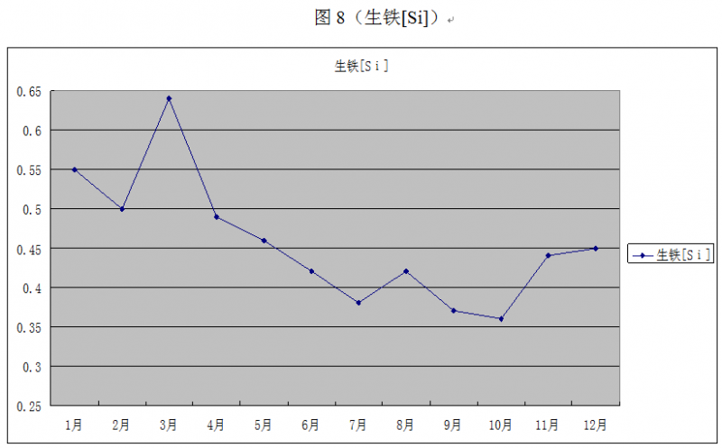 在采取以上保障措施后,龍鋼5號(hào)爐的批重由以前的43~45.5t 逐步擴(kuò)大到現(xiàn)在的56~57t,高爐穩(wěn)定順行,煤氣利用大大提高,提高了綜合冶煉強(qiáng)度,燃科比、焦比逐漸降低,高爐穩(wěn)定順行狀況明顯改善,風(fēng)壓、壓差合適,透氣性改善,料尺下料均勻,無崩料、塌料現(xiàn)象,零懸料的歷史最好水平,[Si]穩(wěn)定在0.4%左右,物理溫度> 1500C ,生鐵質(zhì)量大大改善,生鐵含[S]下降,一級(jí)品率月平均在95%以上。
