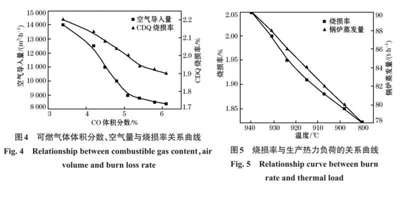以及燒損率與生產(chǎn)熱力負(fù)荷的關(guān)系模型(圖4、圖5),優(yōu)化過程控制參數(shù),實(shí)現(xiàn)干熄爐燒損率降低到1.1%以下。