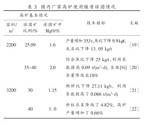 MgO/SiO 2 比值對球團礦高溫性能的影響,并列舉、分析了鎂質球團礦在高爐實踐中的應用