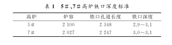 2016年初高爐適當(dāng)提高鐵口深度控制標(biāo)準(zhǔn),由2.9~3.1m 提高到3.0~3.1m,見表1。