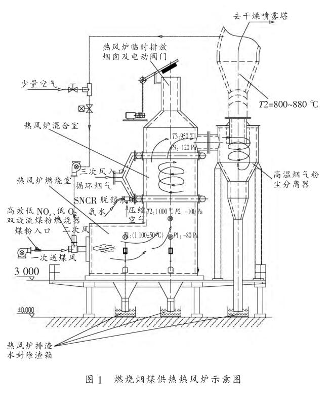 關(guān)鍵詞:潔凈煤粉熱風爐爐型;空氣分級燃燒技術(shù);高溫粉塵分離器;濕法除渣系統(tǒng)