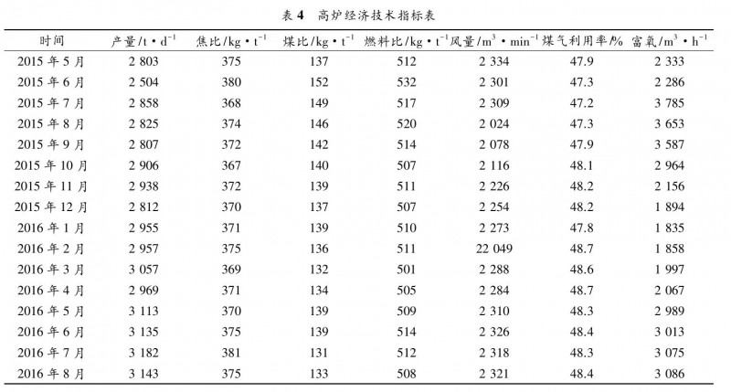 3.2 高爐生產(chǎn)指標(biāo)情況