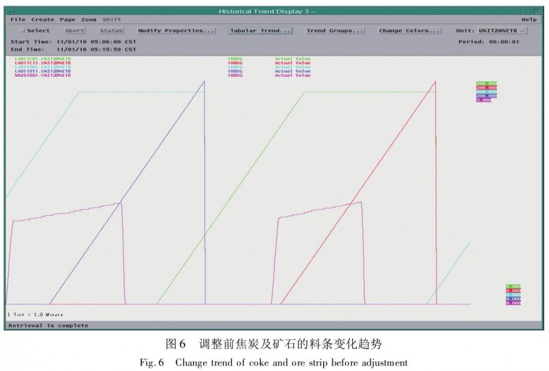 原料系統(tǒng)是高爐爐況穩(wěn)定的基礎(chǔ),現(xiàn)階段節(jié)能、降低燃料比是大型高爐一直追求的目標(biāo),而高爐的上料能力直接影響到高爐的穩(wěn)定順行及燃料消耗。合理利用現(xiàn)場設(shè)備,調(diào)整上料系統(tǒng)的控制程序、排料及布料方式、增加新的料制程序等措施。在不增加成本情況下,提升高爐上料能力,并在異常狀態(tài)下為生產(chǎn)提供新的調(diào)整手段。直接降低燃料比,避免熱量流失,為高爐穩(wěn)定順行提供保障。