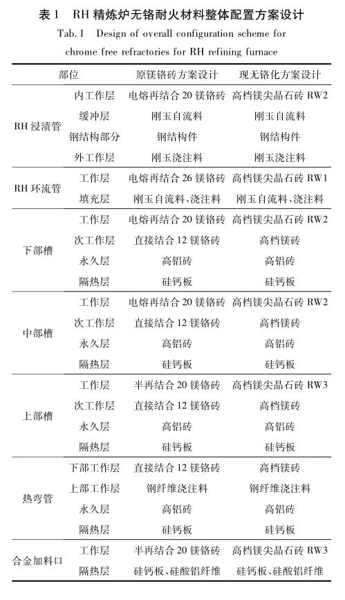 2 RH 耐火材料無鉻化推進(jìn)方案