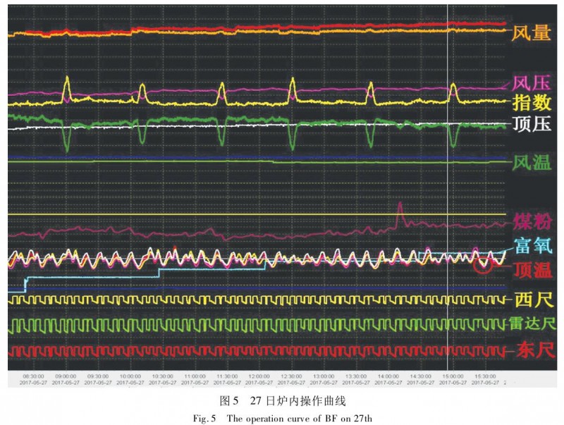 (4) 在減風難以控制煤氣流或難行時,需要大幅調整焦炭負荷,并調整裝料制度等措施處理爐況。