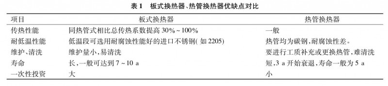 板式換熱器與熱管換熱器優(yōu)缺點(diǎn)對(duì)比見(jiàn)表 1。