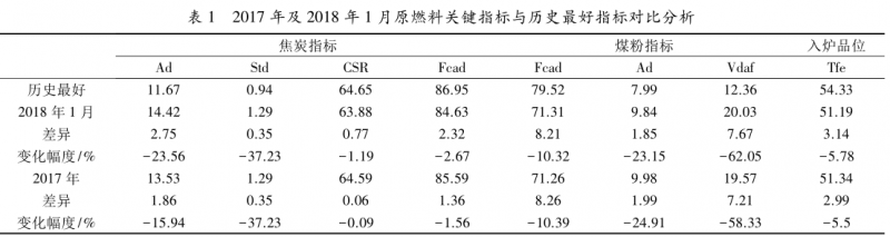 1 2017 年及 2018 年 1 月原燃料關(guān)鍵指標(biāo)與歷史最好指標(biāo)對(duì)比分析