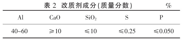 原 260 t 轉爐 IF 鋼鋼包頂渣改質(zhì)方式為出鋼1/4~1/3 時加入小粒白灰 800 kg 進行稀釋調(diào)渣,降低渣中 FeO 和 MnO 含量,增強爐渣堿度。 出鋼結束后, 在鋼包頂渣表面加入鋁質(zhì)改質(zhì)劑脫除渣中氧,改質(zhì)劑成分見表 2 ,改質(zhì)劑反應原理如下[4]:
