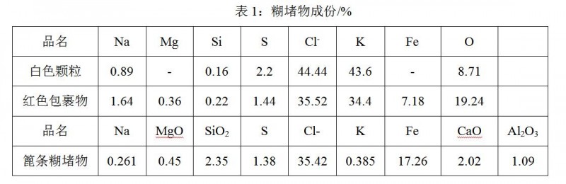 從燒結(jié)機篦條、隔熱套、臺車本體及風(fēng)箱糊堵情況,結(jié)合燒結(jié)過程分析來看,燒結(jié)機篦條之間的間隙是燒結(jié)過程中風(fēng)的通道,風(fēng)的沖刷作用應(yīng)保證篦條表面不糊堵,說明料和篦條、隔熱墊、臺車本體之間的黏合作用力比較大。從黏料情況看,比較堅硬,靠一般的機械清理很困難,黏結(jié)力、作用力相當(dāng)大。與此同時,燒結(jié)機篦條糊堵嚴(yán)重的同時,燒結(jié)主抽風(fēng)機轉(zhuǎn)子、葉片出現(xiàn)掛泥現(xiàn)象,對燒結(jié)主抽風(fēng)機的運行安全造成威脅。