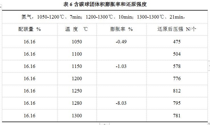 球團內(nèi)剩余部分未還原的鐵和渣,渣中FeO﹑SiO2等生成少量低熔點的渣相。由表7可見,預還原球團開始軟化溫度約1150℃左右,終了溫度約1300℃,軟還溫度區(qū)間窄。綜上所述,預還原球團的高溫還原膨脹和低溫還原粉化性特別好,其軟化開始溫度相對高,軟化區(qū)間也相對較窄,具有優(yōu)良的冶金性能。