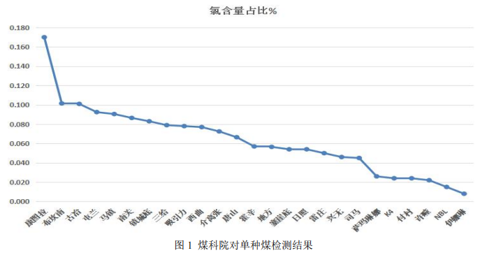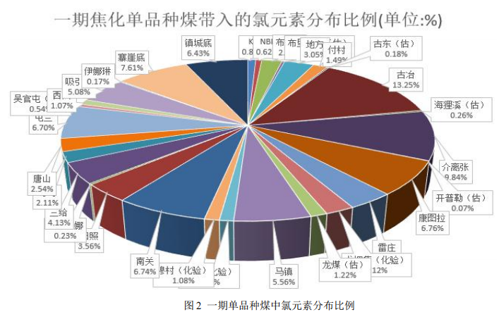 主要來自于原料單品種煤、焦化廢水處理過程投加的鹽酸(HCl)。其中,單品種煤中氯含量如下圖 1所示。