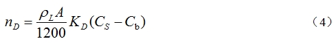 通過上面的公式可知,鐵水中碳的傳質(zhì)系數(shù)與黏度的2.68次方成反比。鐵水黏度的降低會使鐵水中碳的傳質(zhì)系數(shù)增大,從而使碳的溶解速率加快。因此,鐵水中硫含量的增加,會加快碳的溶解。