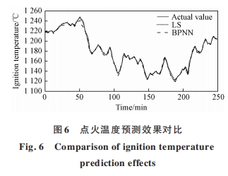 張斌[28]設(shè)計(jì)了一個(gè)基于光纖環(huán)網(wǎng)(以太網(wǎng))和PROFIBUS(過程場(chǎng)總線)控制網(wǎng)的燒結(jié)機(jī)自動(dòng)點(diǎn)火控制系統(tǒng),其點(diǎn)火爐控制系統(tǒng)設(shè)備結(jié)構(gòu)如圖 5 所示[28],實(shí)現(xiàn)了主操作畫面、報(bào)警打印和歷史趨勢(shì)顯示等功能,可以滿足生產(chǎn)工藝需求和減少人員勞動(dòng)強(qiáng)度。DU S 等[29] 構(gòu)建了一種基于點(diǎn)火溫度預(yù)測(cè)的燒結(jié)點(diǎn)火過程智能控制模型,該模型融入了機(jī)理分析法和數(shù)據(jù)驅(qū)動(dòng)法,進(jìn)而實(shí)現(xiàn)對(duì)點(diǎn)火溫度的智能控制以及氣體流量的監(jiān)測(cè)。經(jīng)過試驗(yàn)表明,此模型可以在氣體壓力不穩(wěn)定的情況下實(shí)現(xiàn)對(duì)點(diǎn)火溫度的有效控制,其預(yù)測(cè)結(jié)果如圖 6 所示(該圖源數(shù)據(jù)來自參考文獻(xiàn)[29])。ZHANG C F 等[30]設(shè)計(jì)出一種遵循控制方法的模型,最終實(shí)現(xiàn)通過總線設(shè)備來智能控制點(diǎn)火溫度和氣體流量等。此設(shè)計(jì)滿足工業(yè)需求,對(duì)提高燒結(jié)礦產(chǎn)質(zhì)量有一定的幫助。YING YQ 等[31] 設(shè)計(jì)出一種基于 PIDNN(比例-積分-微分神經(jīng)網(wǎng)絡(luò))的點(diǎn)火智能控制系統(tǒng),將 PIDNN 控制算法與專家系統(tǒng)相結(jié)合來實(shí)現(xiàn)最終的點(diǎn)火智能控制 。