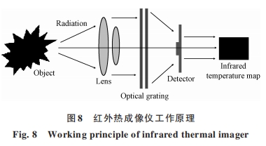 此外,東北大學(xué)的張余謙團(tuán)隊(duì)[39] 通過數(shù)值模擬研究燒結(jié)機(jī)風(fēng)箱及支管的溫度場(chǎng)分布規(guī)律,比較漏風(fēng)和不漏風(fēng)情況下的差異,并改變漏風(fēng)口參數(shù)來探究其對(duì)溫度場(chǎng)的影響。在此基礎(chǔ)上,提出了紅外熱成像漏風(fēng)檢測(cè)法并用高精度紅外熱成像儀進(jìn)行試驗(yàn)證實(shí),其工作原理如圖 8 所示。試驗(yàn)結(jié)果表明,仿真數(shù)據(jù)與實(shí)際數(shù)據(jù)基本一致,這證明了該方法的可行性。 有關(guān)漏風(fēng)監(jiān)測(cè)使用方法及應(yīng)用效果總結(jié)見表 4。