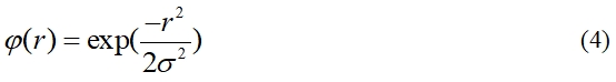 其中,r = ||x - c||為輸入向量與神經(jīng)元中心的歐氏距離,