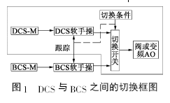 BCS DCS 之間通過OPC 通訊協(xié)議建立連接,并由DCS 完成BCS 所需測點(diǎn)的傳送同時(shí)接收BCS 送回的控制指令,為了實(shí)現(xiàn)DCS BCS系統(tǒng)之間無擾的切換,需要對原DCS 系統(tǒng)組態(tài)稍作修改,切換框圖如圖1 所示。