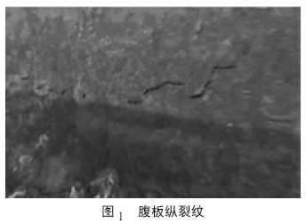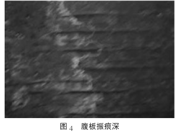 ⑷腹板振痕深一般寬度2 mm 左右,深度2 ~ 3mm,也可以說是橫向凹陷或是橫裂,如圖4 所示。