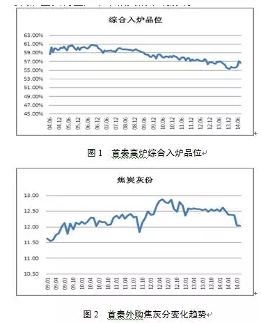 首秦一高爐2004年投產(chǎn)后指標(biāo)逐步攀升,2006年達(dá)到最好水平。首秦二高爐2006年投產(chǎn),2007年初兩座高爐出現(xiàn)大的波動(dòng),指標(biāo)急劇下滑,經(jīng)過近一年治理,2008年達(dá)到正常水平。2010年兩座高爐再次出現(xiàn)波動(dòng),2010年、2011年兩座高爐都處于不穩(wěn)定生產(chǎn)狀態(tài),高爐指標(biāo)完成較差,2011年底兩座高爐逐步進(jìn)入穩(wěn)定生產(chǎn)狀態(tài),2012年后兩座高爐受市場壓力影響,外界條件不斷變差,指標(biāo)完成不是歷年最好,但是實(shí)現(xiàn)了外界條件不斷變差情況下的長時(shí)間穩(wěn)定生產(chǎn)。