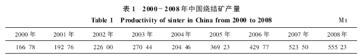 燒結(jié)礦作為中國高爐煉鐵的主要入爐含鐵原料, 隨著鋼鐵工業(yè)的迅猛發(fā)展, 最近幾年燒結(jié)礦產(chǎn)量也一路飆升(表1)[ 1] 。按照燒結(jié)工序能耗為每噸燒結(jié)礦60 kg 標煤計算, 2007 年燒結(jié)總能耗就超過3 千萬t 標煤, 而燒結(jié)點火能耗占整個燒結(jié)能耗的5 %~ 10 %, 如果能夠在燒結(jié)點火方面進一步降低能耗, 不僅能為國家節(jié)約更多的資源和適應日趨激烈的原料市場競爭, 同時也符合國家的低碳經(jīng)濟和環(huán)境保護戰(zhàn)略要求[ 2-3] 。