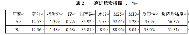 (3) 高爐強化是建立在穩(wěn)定的原燃料基礎上的,由于煉鐵廠焦炭采用外購焦,質量差,且參差不齊,制約了高爐進一步強化的進程。