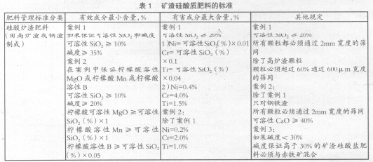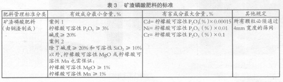 肥料管理法中除規(guī)定了特殊肥料之外,還重新規(guī)定了普通肥料。普通肥料雖然是官方明確規(guī)定的肥料,但還是作為特殊肥料以外的肥料定義。普通肥料中有氮肥、磷酸肥、鉀肥、石灰肥、苦土肥、硅酸肥、錳肥等標(biāo)準(zhǔn)。以鋼鐵渣為原料的普通肥料,目前有礦渣硅酸質(zhì)肥料、副產(chǎn)石灰肥、礦渣磷酸肥的標(biāo)準(zhǔn)(見(jiàn)表1-表3)。