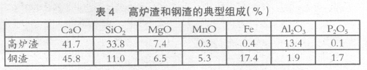 料和以鋼渣為原料的肥料對(duì)比鋼鐵渣分為高爐渣和鋼渣。表4 是高爐渣和鋼渣的典型組成。高爐渣作為礦渣硅酸質(zhì)肥料的原料,年使用量約16 萬(wàn)噸。鋼渣作為礦渣硅酸質(zhì)肥料、副產(chǎn)石灰肥料、礦渣磷酸肥料和特殊肥料的原料,年使用量約10 萬(wàn)噸。鋼渣與高爐渣相比,SiO2 的組成偏低。但是,鋼渣含有的SiO2多是容易被植物利用的有效硅酸來(lái)源。因此,可以期待鋼渣比高爐渣更有效地向植物供給硅酸。