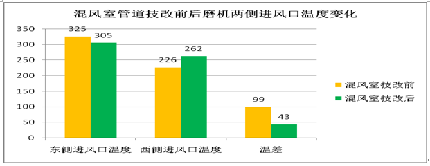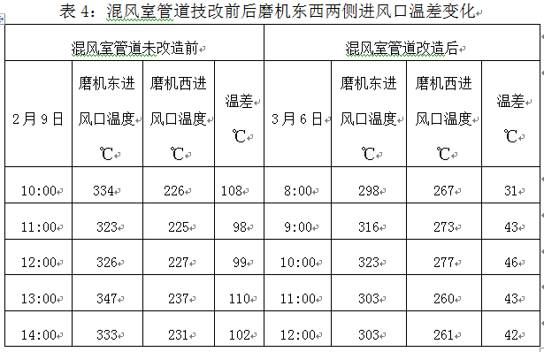 4)  混風室循環(huán)風管道改造,平衡磨機兩側(cè)進風口溫差。