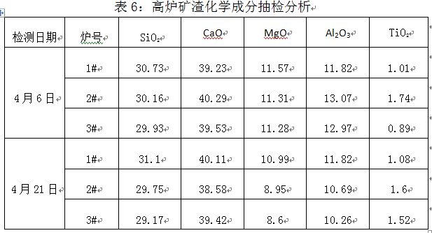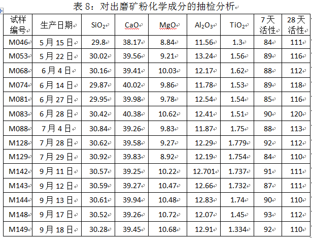 以活性成分含量高的1#、3#高爐礦渣為主要原料,配以2#爐的礦渣混合使用,提高入磨礦渣中CaO、SiO2、Al2O3、MgO含量,減少SiO2、TiO2含量。