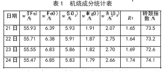 從表1 中可以看出,機燒轉鼓指數(shù)低于77%的控制標準,在23 日出現(xiàn)了最低值72.6%,強度明顯下降。