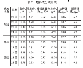 從表2 可以看出,自產瑞達焦炭水分較正常值5.0%升高0.2%,潞寶焦炭較正常值8.0%升高7.8%,華太焦炭較正常值8.0%升高2.5%。