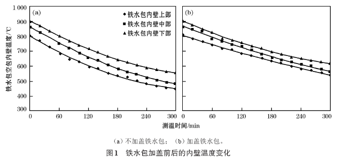 鐵水包加蓋前后的內(nèi)壁溫度變化如圖1所示。