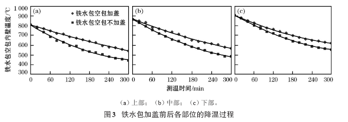 3. 2. 1 加蓋對鐵水包空包內(nèi)壁降溫速率的影響