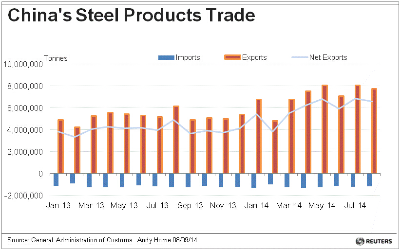情況沒有變得更糟的唯一原因是,中國鋼鐵生產(chǎn)商擁有出口這一重要的安全閥。