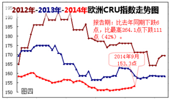 歐洲鋼材市場:漲跌互現(xiàn)。該地區(qū)153.3點的CRU指數(shù),月環(huán)比上漲1.2%(漲幅擴大)年同比下跌5.9%(跌幅擴大)。(見下圖四)