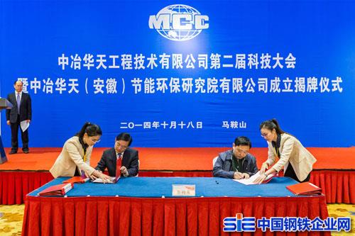 中國中冶總裁張兆祥和馬鞍山市市長魏堯共同為中冶華天(安徽)節(jié)能環(huán)保研究院有限公司揭牌