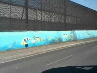 廠內(nèi)所有煙囪外觀全部采用藍、綠、白相間彩涂;廢鋼堆場外設置擋風網(wǎng),擋風網(wǎng)立于矮擋墻上,面對道路一側(cè)的擋墻外墻面彩繪圖案;處處注重環(huán)境的美化。