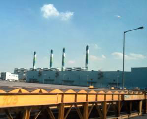 上圖是唐津廠區(qū)24Km2廠區(qū)鳥瞰圖,拍攝于2013年底,圖中亦可清楚看出7個球形料倉,冒煙處應該是燒結生產(chǎn)區(qū)域,我們在現(xiàn)場沒有看到冒煙景象。