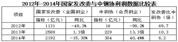 更值得關(guān)注的是,國(guó)家發(fā)展改革委最新公布的,2014年中國(guó)鋼鐵業(yè)實(shí)現(xiàn)利潤(rùn)2192億元,又較鋼協(xié)會(huì)員單位多出6.2倍(見(jiàn)下表)。為此更加堅(jiān)信,中國(guó)鋼鐵業(yè)一定能在經(jīng)濟(jì)新常態(tài)中攻堅(jiān)克難、砥礪前行。