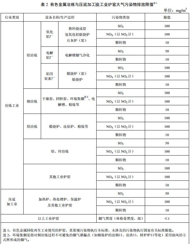 5.2 有色金屬冶煉與壓延加工業(yè)工業(yè)爐窯大氣污染物排放限值