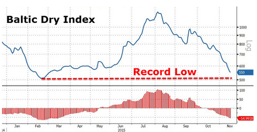 實(shí)際上,歷年來(lái),BDI指數(shù)從未在11月如此低迷: