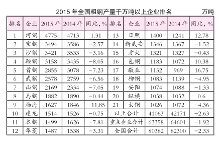 編者按:2015年我國鋼材需求下降、供應(yīng)過剩,市場價(jià)格低迷,企業(yè)效益明顯下滑。在競爭如此激烈的市場環(huán)境下,我國鋼材價(jià)格走勢以及市場環(huán)境的變化,直接影響著企業(yè)的生存環(huán)境,牽動(dòng)著企業(yè)的生命線。為此本報(bào)組織“2015年鋼材市場回顧與展望”專題,本專題包括國內(nèi)粗鋼產(chǎn)量、鋼材進(jìn)出口、原料市場等內(nèi)容,并于本期開始陸續(xù)刊登,以饗讀者。